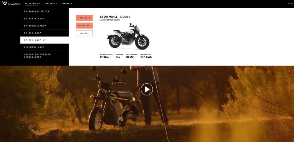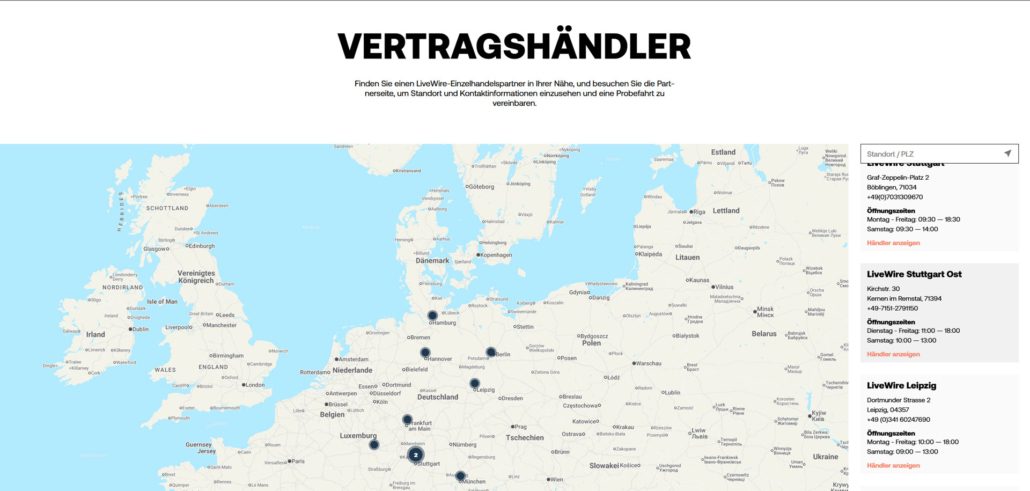 Livewire Deutschland online Probefahrtenbuchung und Verwaltung Händlernetzwerk